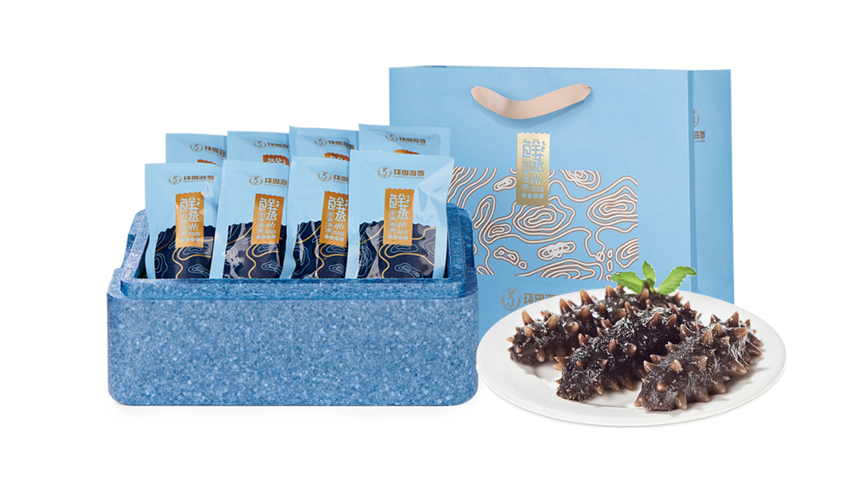 環(huán)島干海參禮盒| 大連長(zhǎng)海鮮活傳統(tǒng)工藝加工,清洗去臟,大火熬煮,低溫干燥。海參形體飽滿,水發(fā)率高,色澤口感佳,便于長(zhǎng)期儲(chǔ)存。